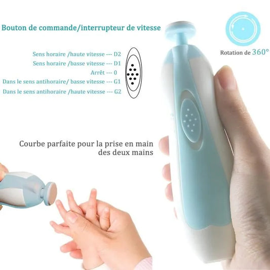 Lime à Ongles Électrique pour Bébé avec Éclairage LED et Six Têtes de Limage